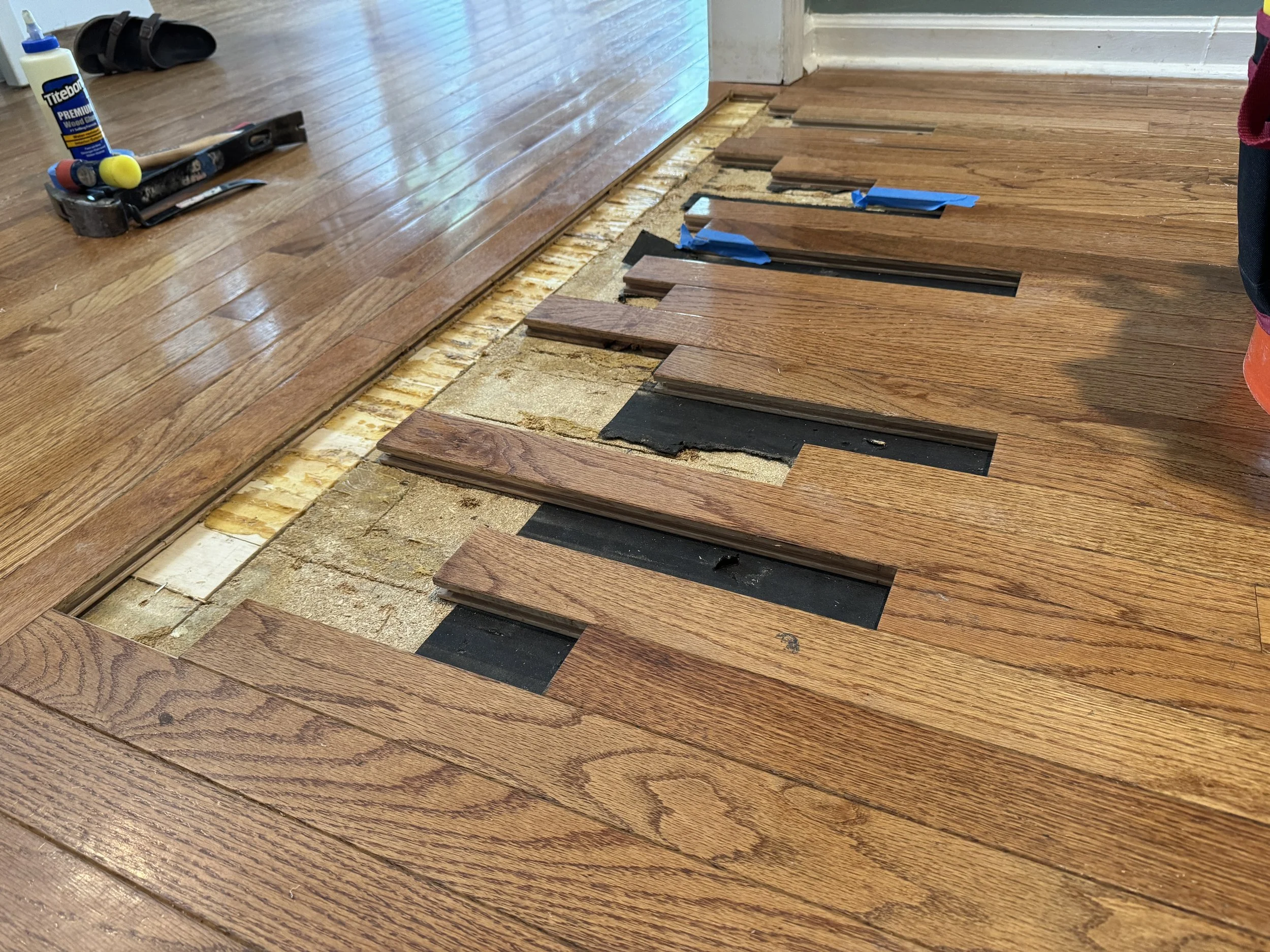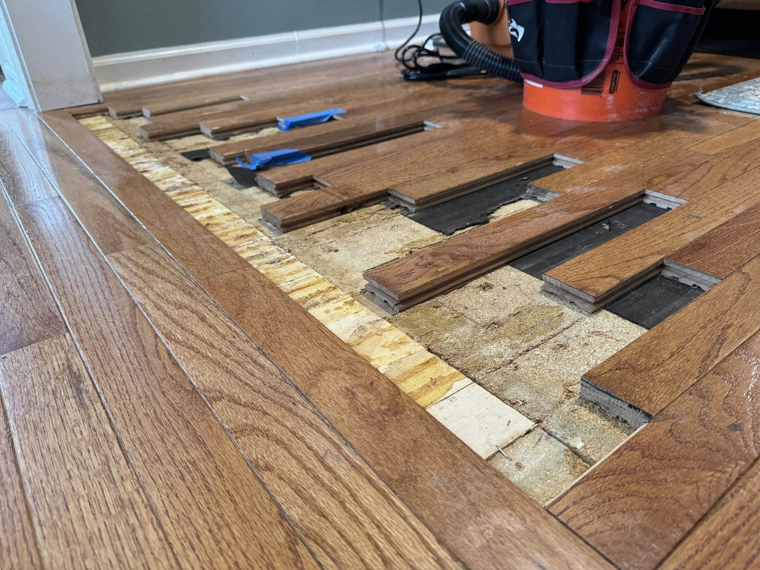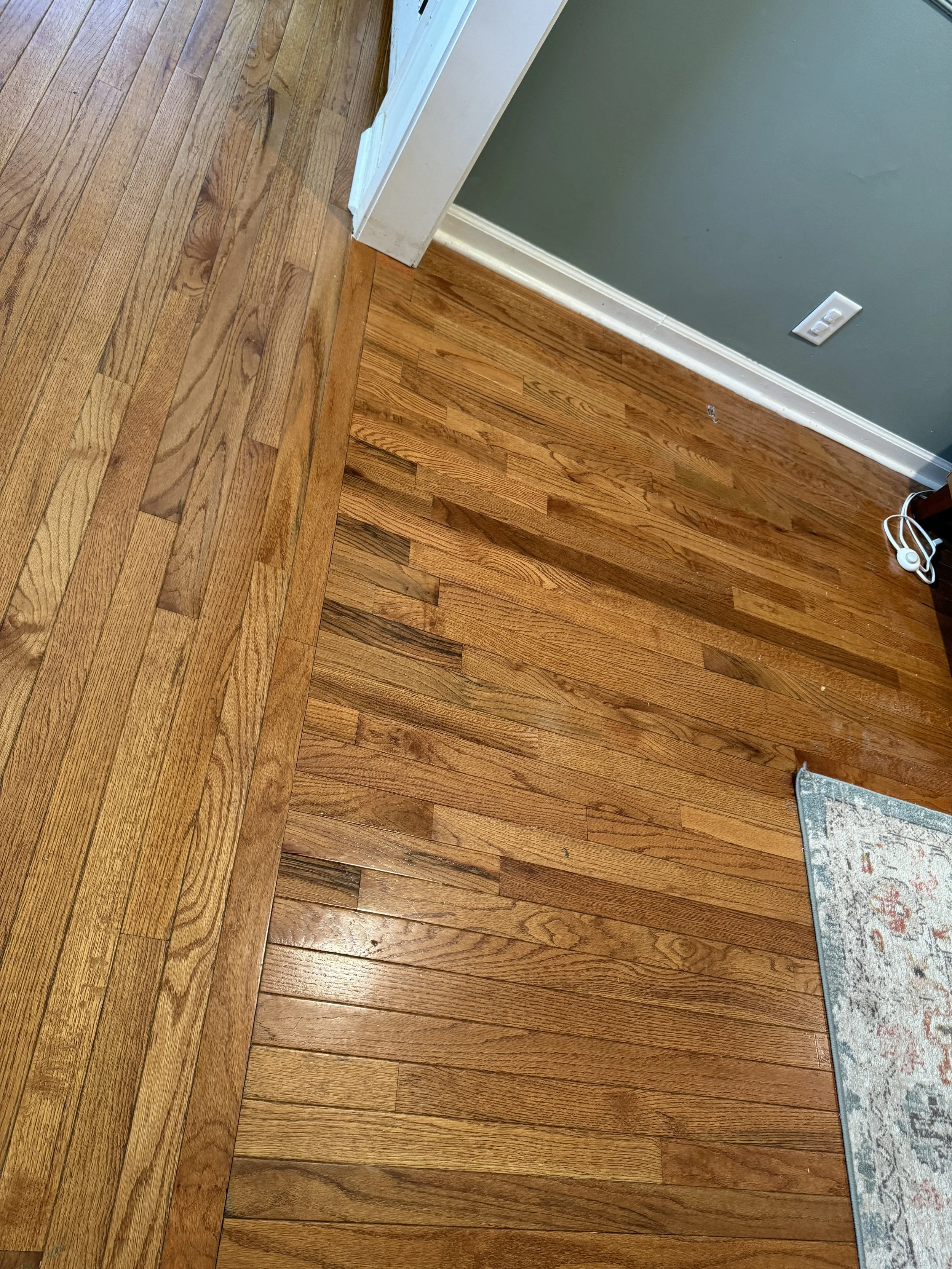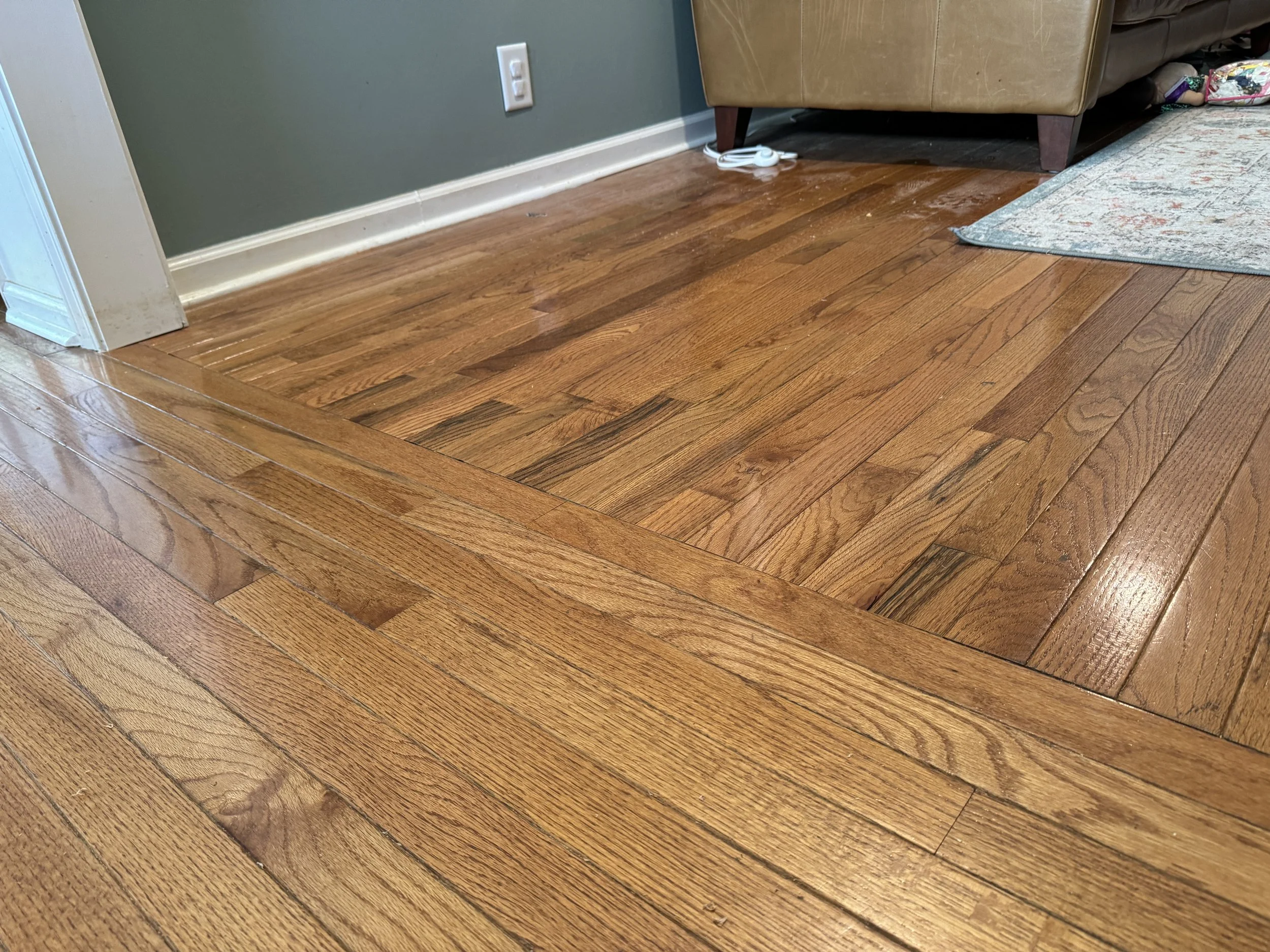 Sometimes you just need a redo. Recently a client reached out to me regarding a poor attempt at repairing their hardwood floors. A contractor removed a wall and attempted to fill in the hardwood void. I was able to remove the repair and extended a few feet of existing flooring to create a new and cleaner hardwood transition. If I didn’t tell you it was there, you would probably miss it.